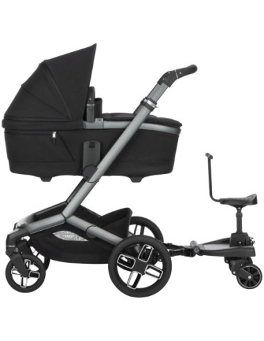 È ideale per i bambini a partire dai 2 anni di età e fino a un peso di 22 kg, sia che vogliano stare seduti in modo rilassato o in piedi. L'Hop-On-Board di Maxi Cosi è facile da fissare e può essere semplicemente ripiegato quando non viene utilizzato grazie alla cinghia di sospensione in dotazione, senza doverlo rimuovere. La superficie antiscivolo e le sospensioni integrate garantiscono una guida confortevole e un appoggio sicuro.