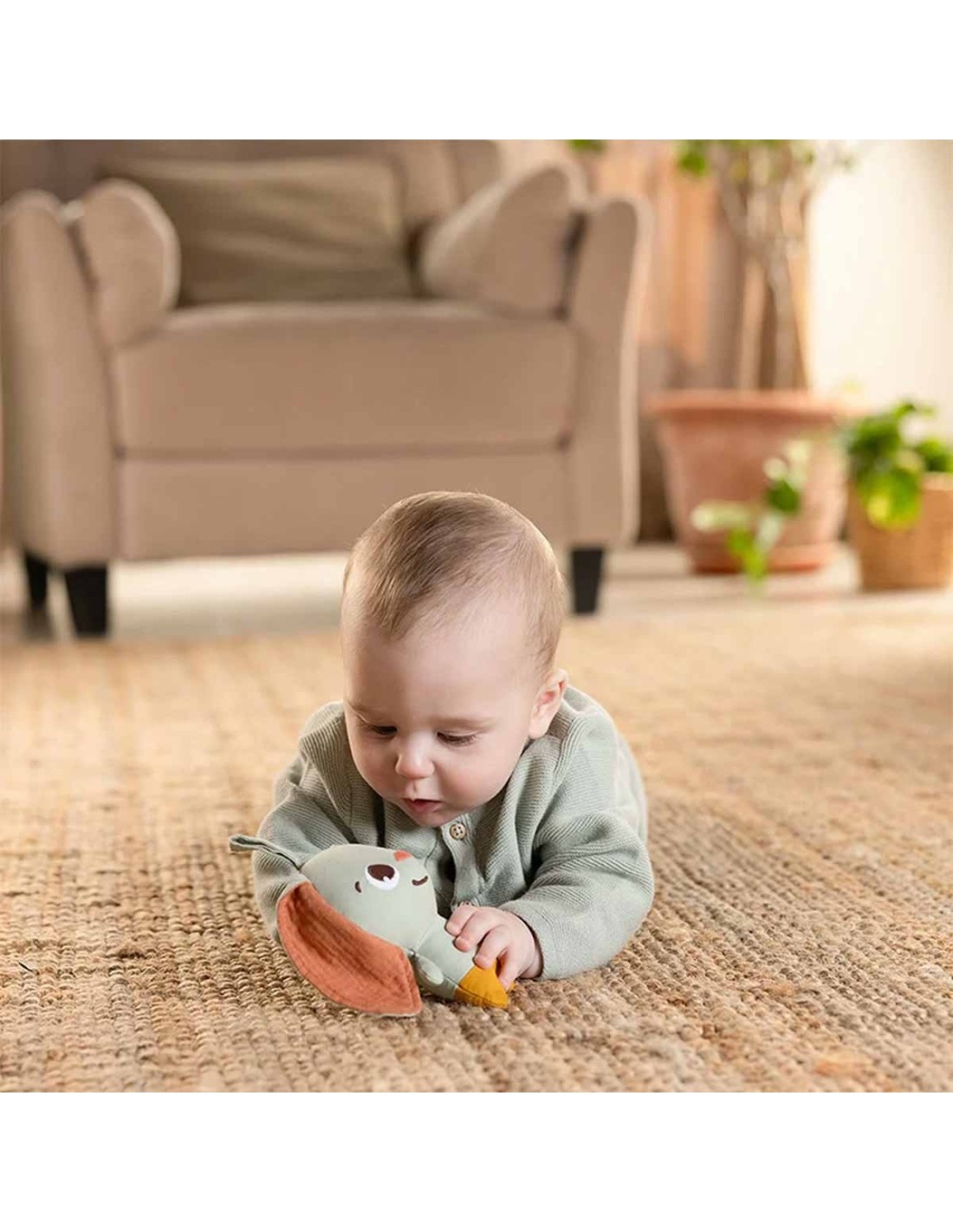 Questo pupazzo incoraggia lo sviluppo emotivo dando al bambino un senso di sicurezza e di familiarità ovunque vada, grazie agli occhi grandi, al sorriso caloroso e ai tessuti morbidi.
