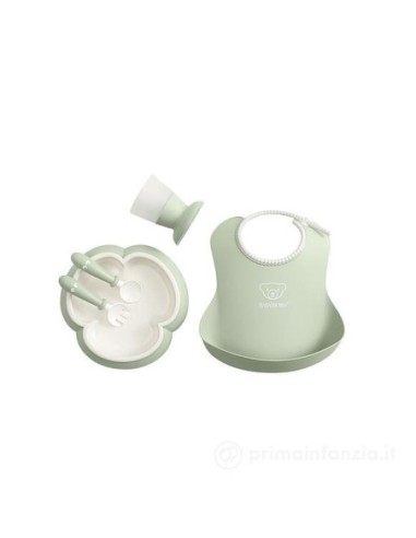 Set pappa di BabyBjörn 4m+ composto da: piatto, cucchiaio e forchetta, bavaglino morbido, bicchiere. In elegante confezione perfetta come regalo. Senza BPA. Facili da lavare a mano o in lavastoviglie