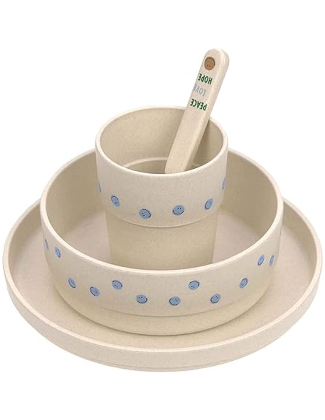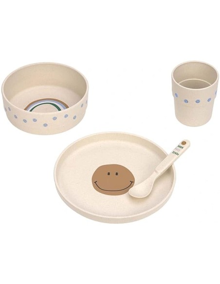 La collezione di stoviglie per bambini Happy Rascals di LÄSSIG comprende il bicchiere con le simpatiche stampe di smiley e arcobaleni.