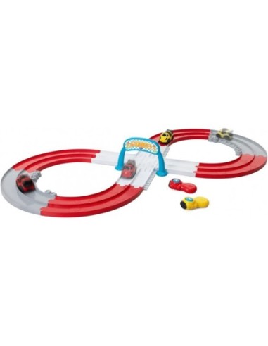 PISTA RADIOCONTROLLO 3 IN 1: il bambino può giocare in 3 modi diversi - come pista auto a forma di 8 (140 x 60 cm), pista di forma ovale (105 x 60 cm) o con le auto senza telecomando