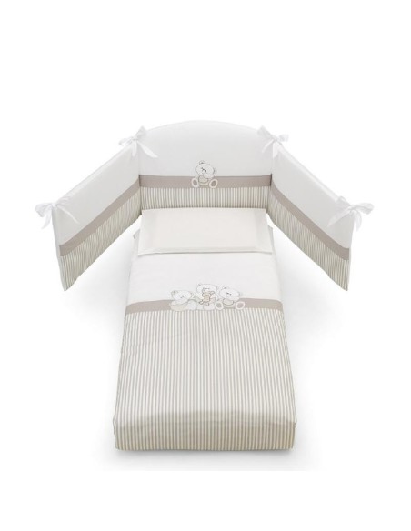 Composto da federa cuscino, piumone sfilabile e paracolpi laterale.