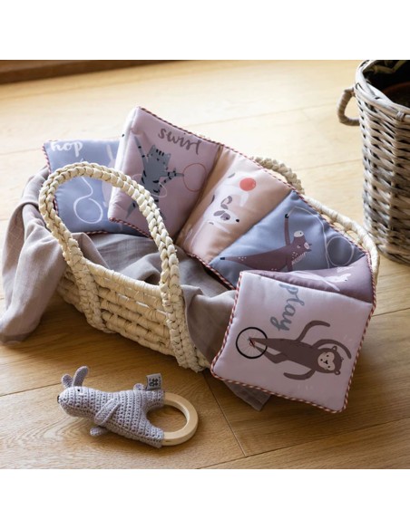 Il libro in tessuto ha 7 divertenti pagine doppie che si piegano come una fisarmonica.
