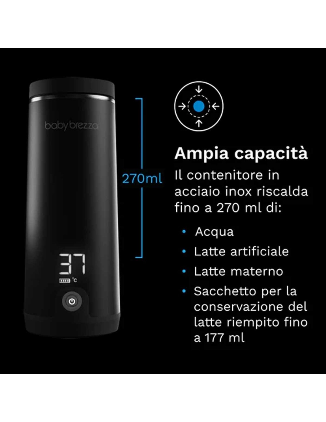 - Grande capacità: La tazza in acciaio inox riscalda fino a 270 ml di acqua, formula o latte materno, oppure un sacchetto di latte da 180 ml già riempito.