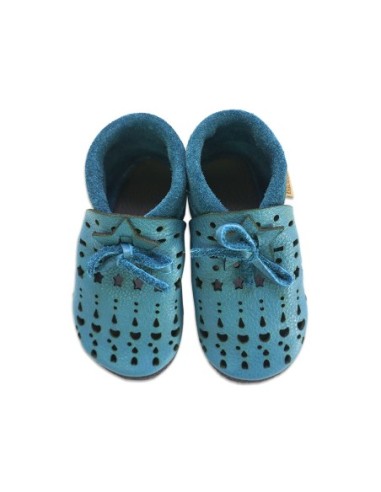 Realizzato in vera pelle conciata al vegetale di prima qualità, sicuro per i piedi nudi dei bambini.
