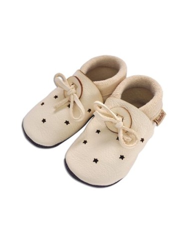 Realizzato in vera pelle conciata al vegetale di prima qualità, sicuro per i piedi nudi dei bambini.