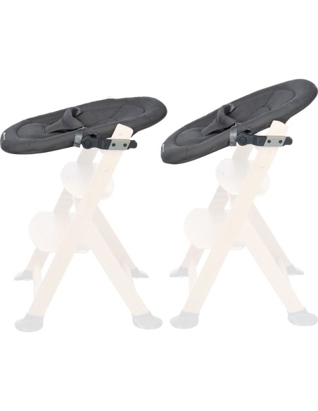 Ultra-imbottita e super confortevole, la sdraietta 2 in 1 con 2 comode posizioni di reclinazione, può essere fissata al seggiolone Timba per i pasti con la famiglia.