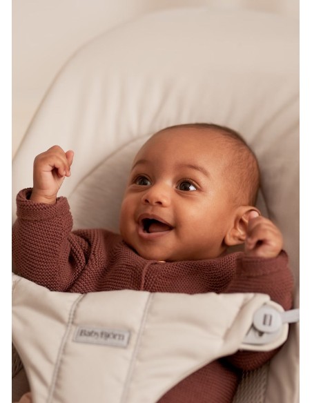 La seduta è ergonomica e fornisce il giusto sostegno a collo e schiena del bambino. Ruotando il tessuto la sdraietta si trasforma in poltroncina per bimbi più grandi.