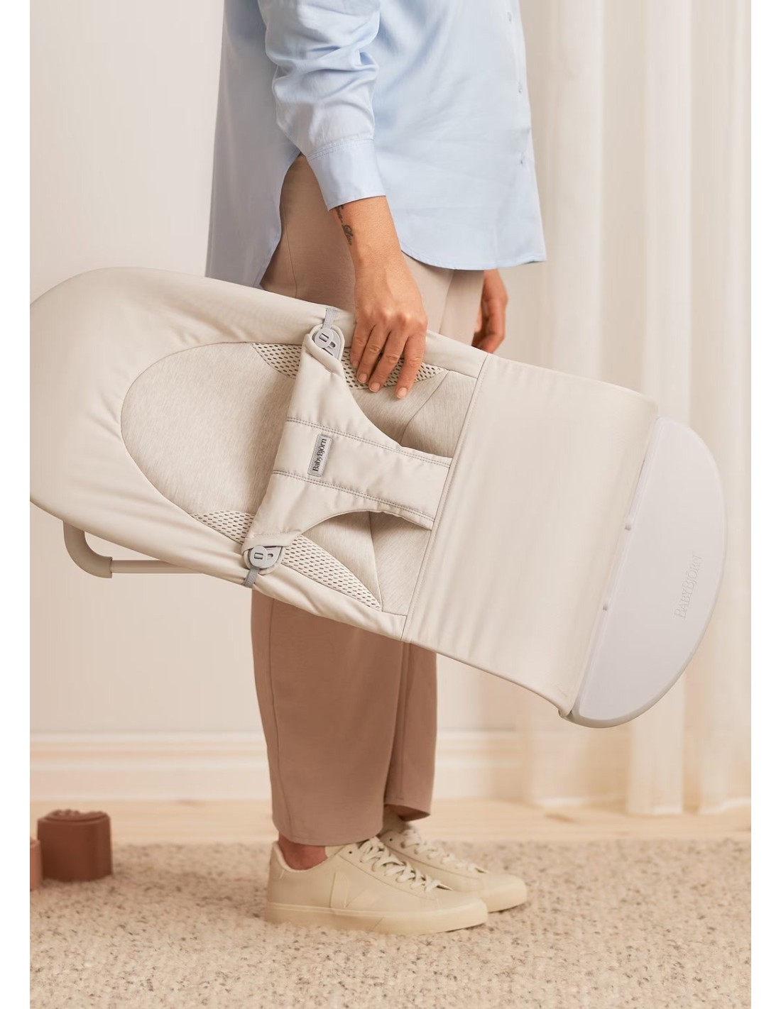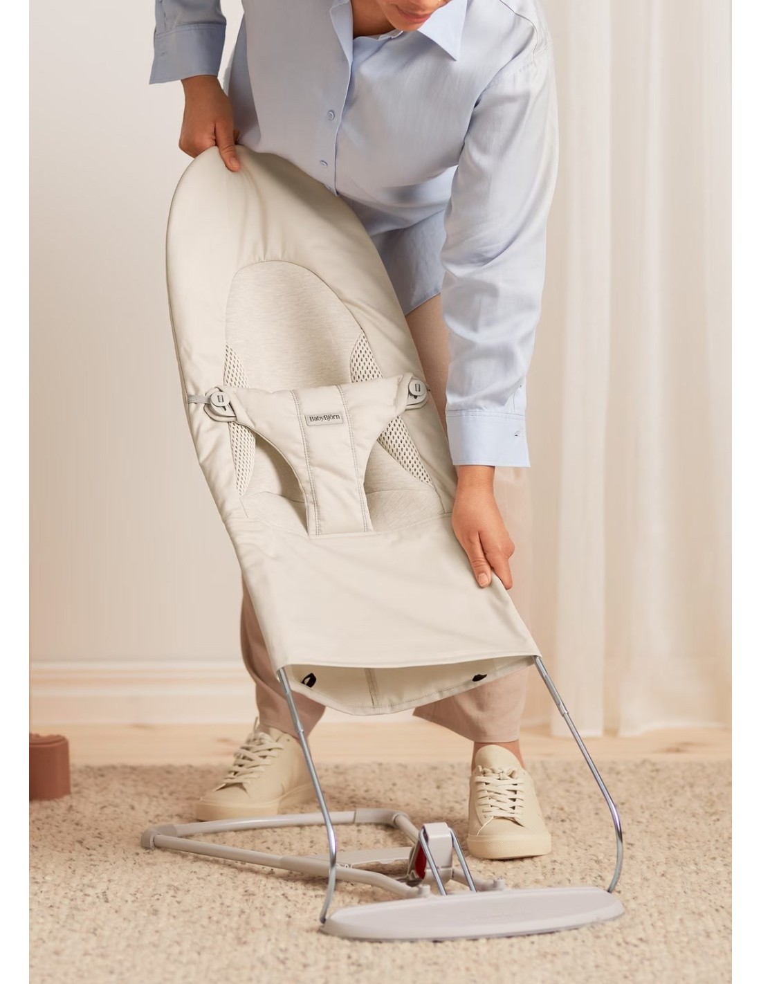 Linee arrotondate, tessuti morbidi rendono questa sdraietta il posto perfetto in cui il bimbo può riposare, divertirsi e giocare. Il suo design è particolarmente accogliente ed avvolgente soprattutto per i più piccoli.