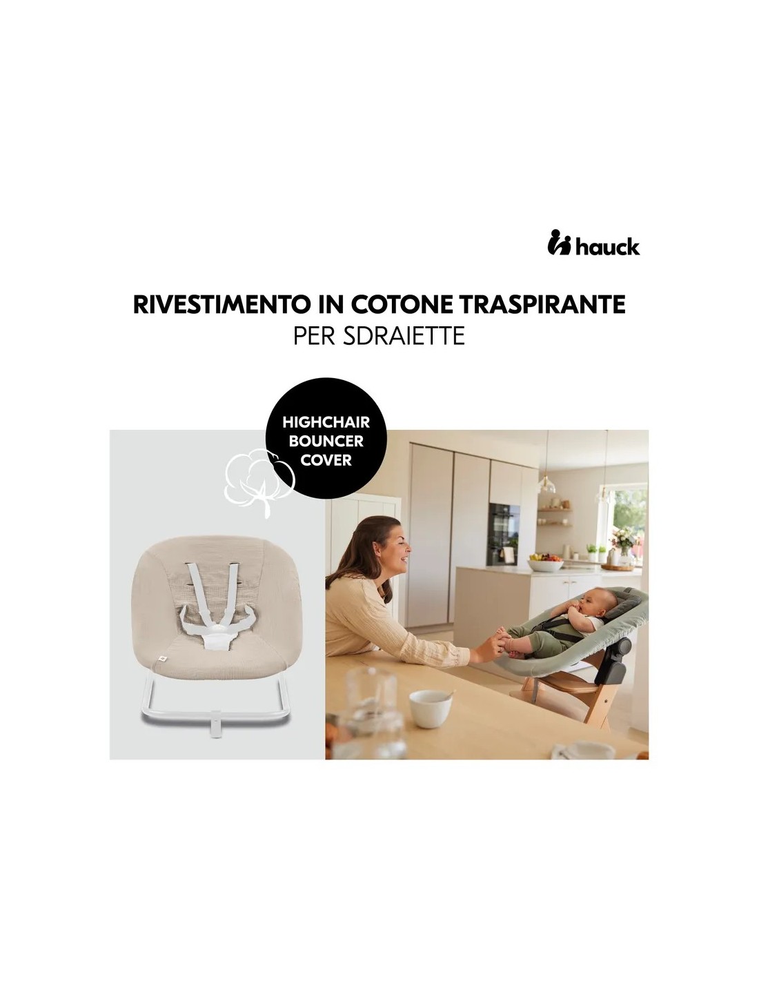 Con la copertura protettiva, il rivestimento originale hauck di Highchair Bouncer o Eco resta pulito.