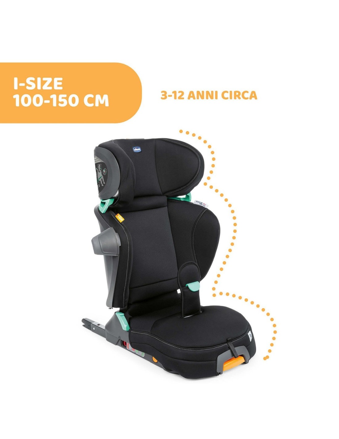 Omologato ECE R129/03, l'ultimo standard i-Size, per il trasporto di bambini di altezza compresa tra 100 e 150 cm (3-12 anni circa).