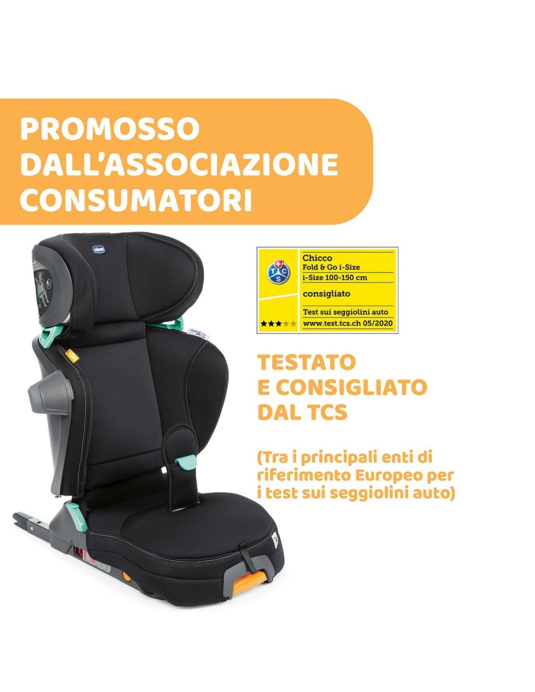 - Testato e consigliato dal TCS uno dei principali tester europei di seggiolini auto per bambini.