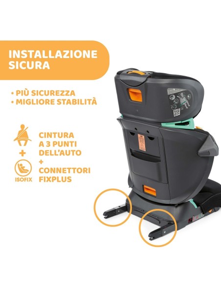- Installazione con cintura a 3-punti dell'auto e connettori rigidi per offrire una migliore stabilità (i connettori rigidi sono opzionali).