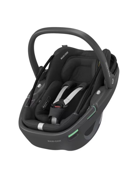 Feedback visivo e sonoro di corretta installazione del Soft Carrier Protezioni laterali Side Protection System Omologato per il trasporto aereo (certificazione TUV) Generale Nuovo design ergonomico Installazione con base ISOFIX o con cintura di sicurezza dell'auto a 3 punti Compatibile con i telai dei passeggini Maxi-Cosi, Quinny e di altre marche