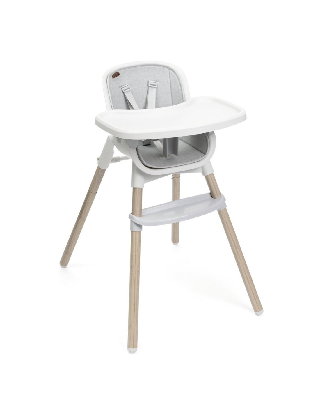 - Rimuovi il vassoio e l'imbracatura per convertire il seggiolone in uno sgabello robusto per bambini