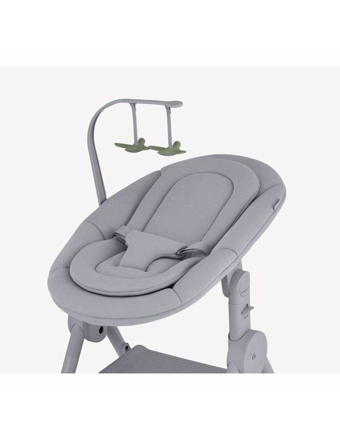 La sdraietta per neonati include un archetto giochi con forme a contrasto, ideali per stimolare la vista e i sensi del bambino.