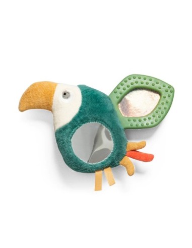 Tully il Tucano è un divertente giocattolo con uno specchio sulla pancia e simpatiche ali.