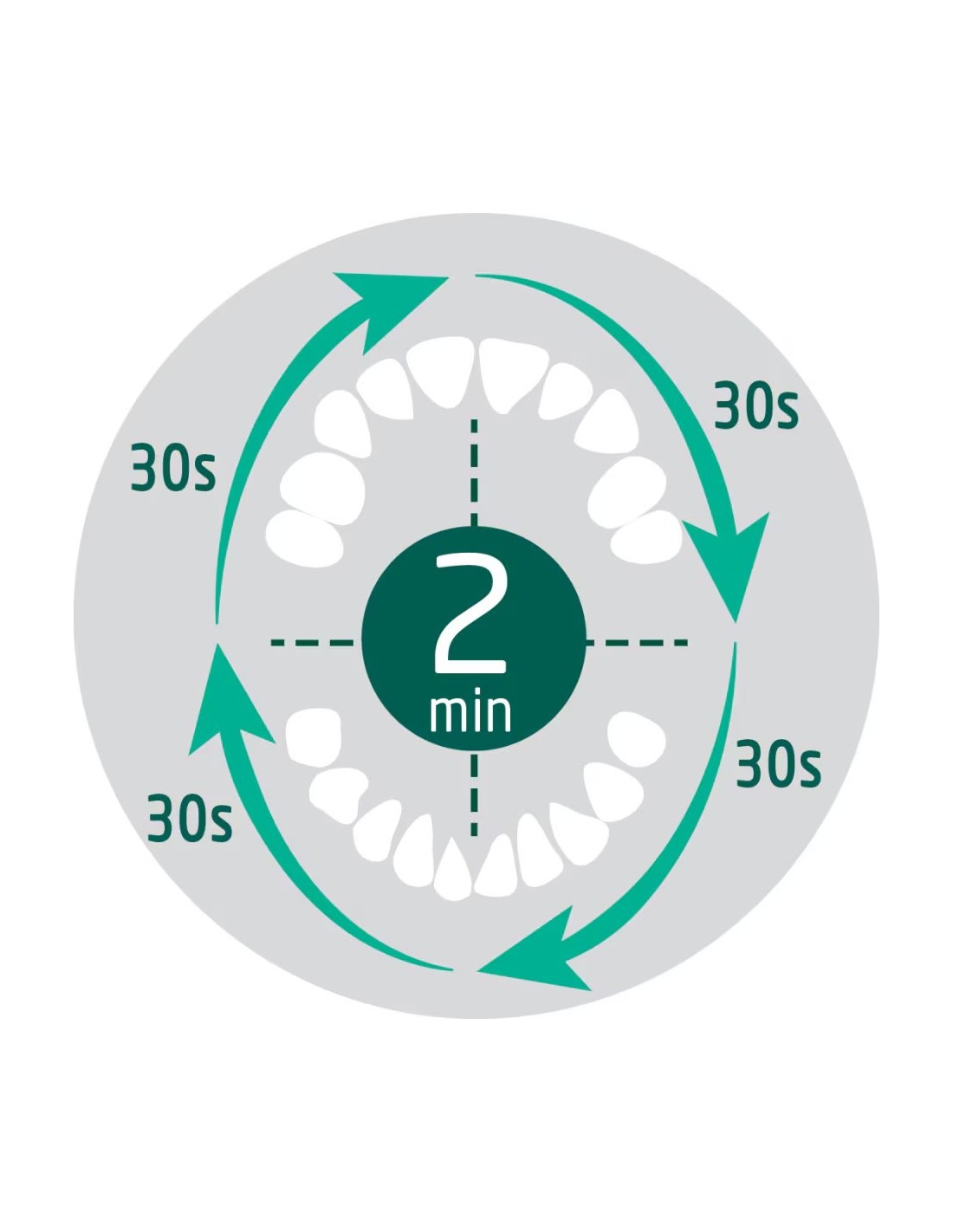 - Lo spazzolino da denti cambia vibrazione ogni 30 secondi, per segnalare il momento di cambiare zona di spazzolamento, e si spegne automaticamente dopo 2 minuti.
