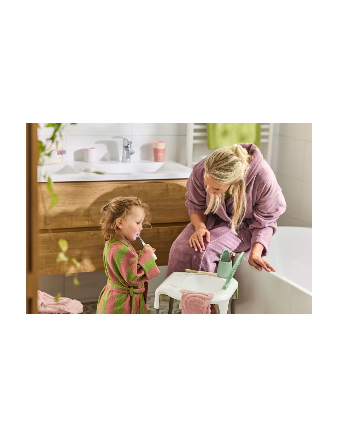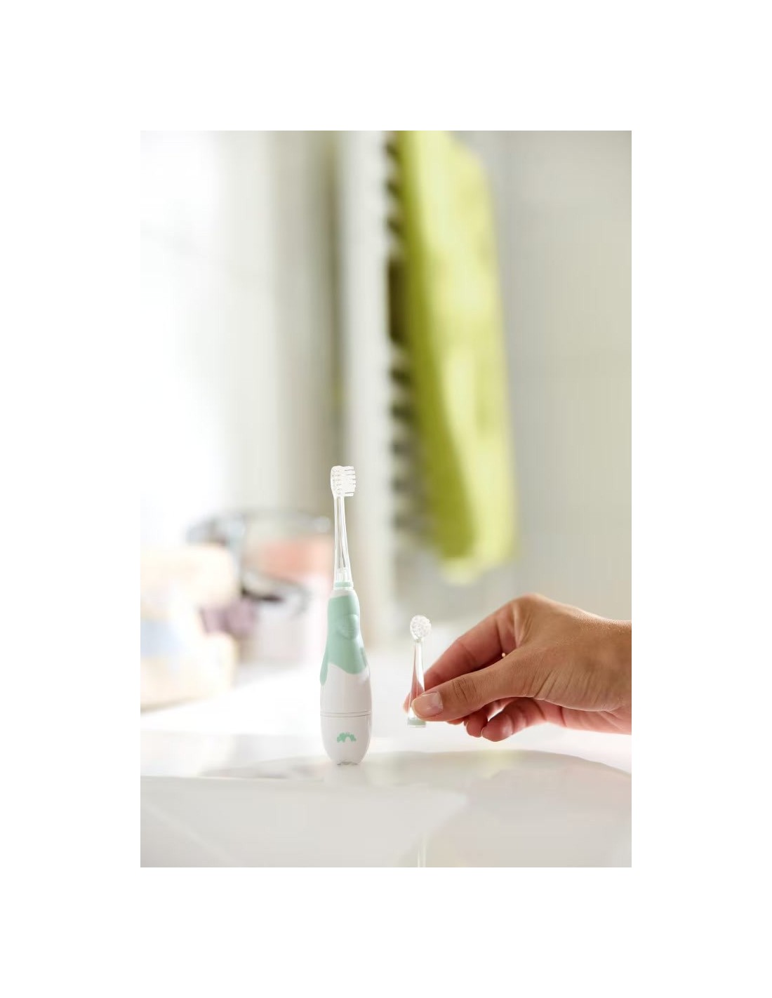 Con 8 testine sostituibili (3 per neonati e 5 per bimbi piccoli), è progettato per accompagnare il bambino nella crescita, divenendo uno strumento di lunga durata della routine di igiene dentale. E, grazie alle luci LED bianche, ogni sessione di spazzolamento è luminosa, divertente e facile da vedere, così nessun punto passerà mai inosservato.