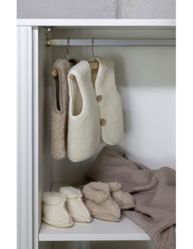 La naturale morbidezza della lana merino offre un comfort e un calore ineguagliabili, mentre la sua traspirabilità assicura che il vostro piccolo non si surriscaldi. La lana merino è nota per la sua capacità unica di regolare la temperatura corporea, rendendo questo gilet adatto a tutte le stagioni. In estate, mantiene il bambino fresco e comodo allontanando l'umidità dalla pelle, mentre in inverno mantiene il calore e protegge dal freddo.