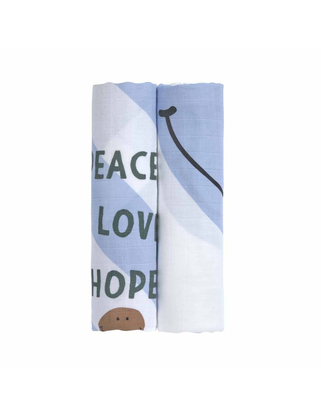 I teli misurano 120 x 120 cm e sono disponibili in confezione doppia in diverse combinazioni di colori. Sono particolarmente morbidi e delicati sulla pelle del bambino, sono lavabili a 40° e diventano ancora più morbidi dopo ogni lavaggio.