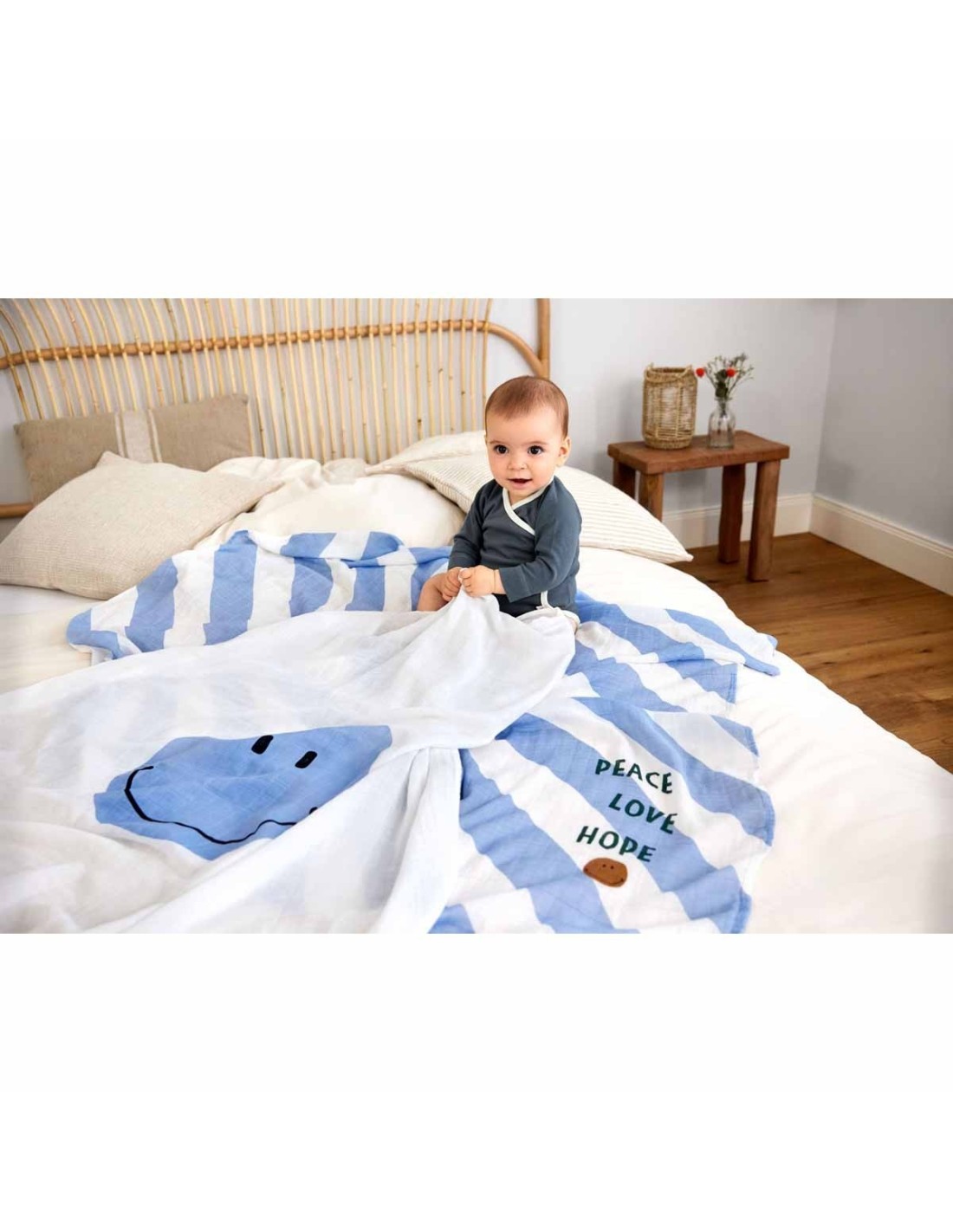 Prelavata, traspirante e di facile manutenzione, può essere utilizzata come coperta leggera, come telo per l'allattamento o per avvolgere il bambino.