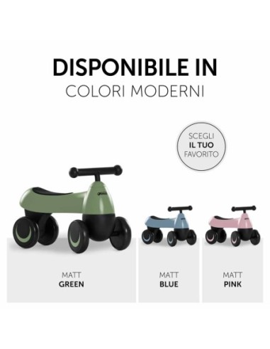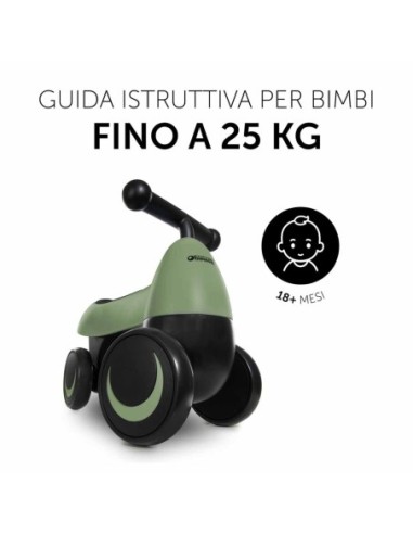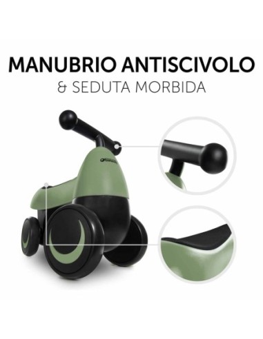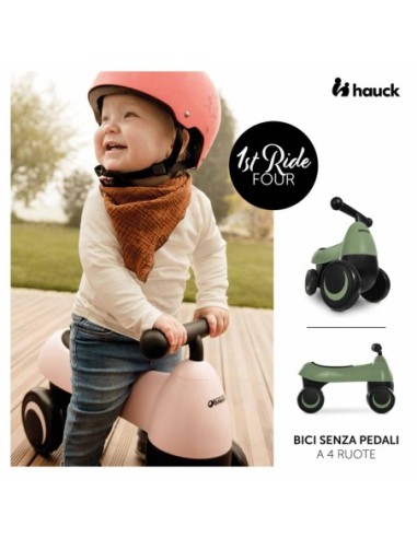 A partire dai 18 mesi, bambini e bambine possono scoprire i loro dintorni sul comodo veicolo a quattro ruote. La forma ergonomica che diventa più sottile dietro, facilita la guida ed impedisce alle gambe del bambino di entrare in contatto con le ruote posteriori. Sul 1st Ride Four, il tuo bambino può allenare agilità, motricità e coordinazione solamente giocando.
