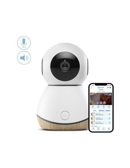 La tranquillità non è mai stata così a portata di mano. Il baby monitor See ti rassicura che il tuo bambino potrà dormire sempre comodamente e al sicuro. Con lo streaming Live HD sempre attivo, puoi tenere d'occhio il tuo piccolo ovunque e in qualsiasi momento con le pratiche funzioni telecomandate per visione diurna e notturna, panoramica, inclinazione e zoom. Puoi programmare diverse ninne nanne e suoni rilassanti per assicurarti che il tuo bambino sia sempre tranquillo. In più, con la funzione 2way-talk puoi confortare il tuo piccolo con la tua voce mentre raggiungi la nursery. Una rapida pressione sul pratico pulsante di chiamata sul monitor ti mette direttamente in contatto tramite un dispositivo mobile connesso. Puoi acquisire immagini da condividere con amici e familiari e utilizzare una scheda SD* o un abbonamento a un servizio cloud per salvare immagini e video e non perdere mai un sorriso o un'espressione del tuo cucciolo.
