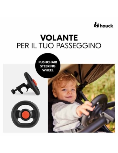 Il Pushchair Steering Wheel è compatibile con pressoché ogni modello di passeggino (per un frontalino con diametro fino a 39,5 mm) ed è realizzato su misura per i passeggini hauck. Eccezione: modelli senza frontalino.