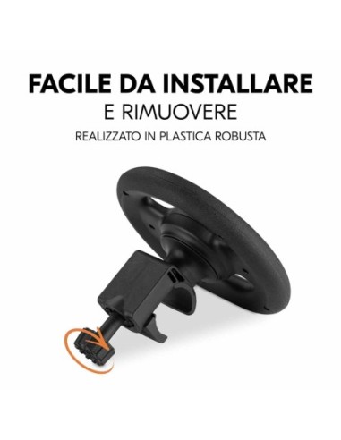 Non vuoi avere sempre con te il volante da passeggino? Il volante realizzato in plastica robusta si fissa in modo facile e veloce. E potrai ritoglierlo in modo altrettanto veloce.