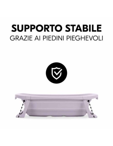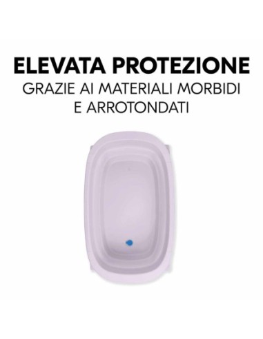 La vaschetta pieghevole contiene 40 L d'acqua, con una capacità di carico massima di 30 kg. In questo modo il bambino ha spazio e si risparmia acqua rispetto ad una vaschetta grande. La testa del piccolino sarà sempre protetta grazie al design con bordi morbidi e arrotondati.