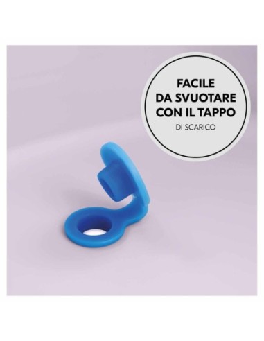 Per aprire la vaschetta, dispiegare entrambi i piedi e premere sul fondo. Quando il bambino avrà terminato il suo bagnetto, sarà sufficiente scaricare l'acqua tramite il tappo di scarico, in modo rapido e semplice. Una volta svuotata, per richiuderla, basterà capovolgerla premere il fondo e ripiegare i piedi.