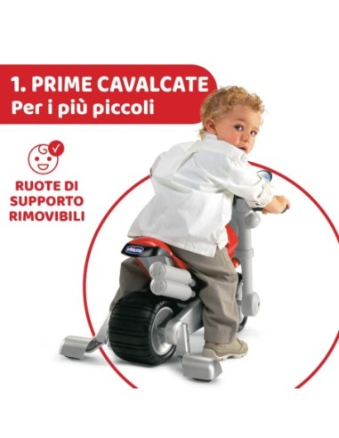 - La moto cavalcabile Chicco Ducati Monster è dotata di due ruotine laterali rimovibili per muoversi in tutta sicurezza
