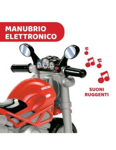 - La moto Chicco Ducati Monster, ideata per spingersi e correre come un vero campione, è un gioco cavalcabile divertente e sicuro con 2 modalità di utilizzo per divertirsi fin da piccoli