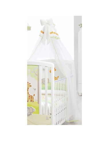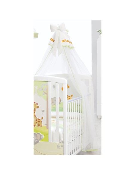 Realizzato a mano in tulle antistrappo traforato con volant coordinato e fiocco.