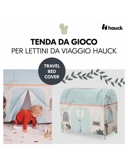 Con la Travel Bed Cover trasformi il lettino da viaggio hauck (larghezza max. superficie di 60 cm) del tuo bambino in un palazzo o in giardino.